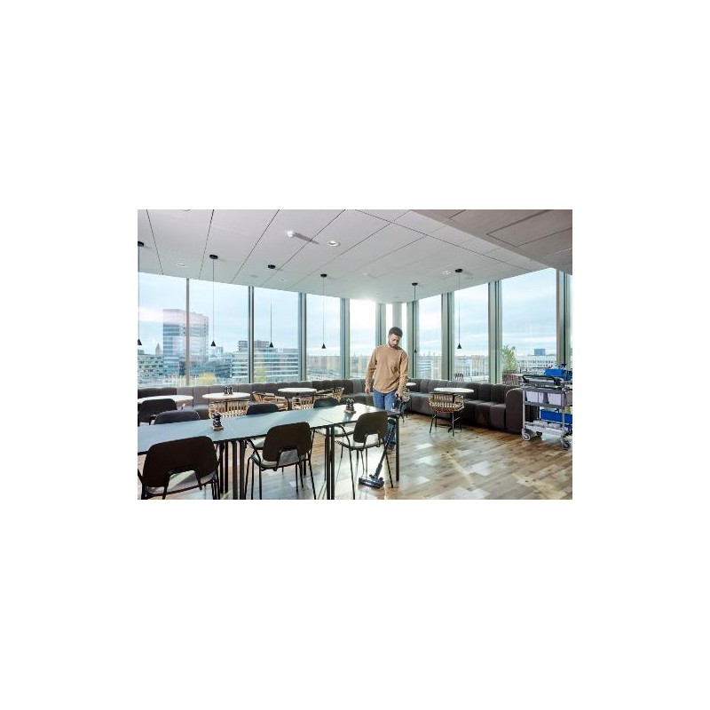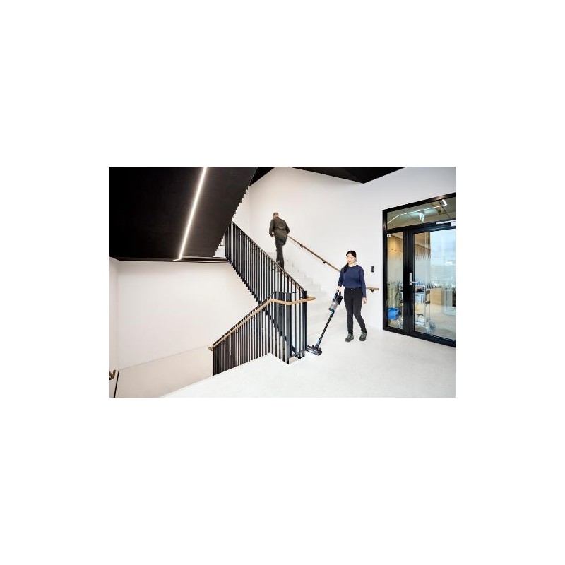 The VU200 is Nilfisk's new cordless stick vacuum that lets you clean comfortably and quickly without interrupting your workflow. This tool does not mess around; it goes straight to business. Spot it, got it!